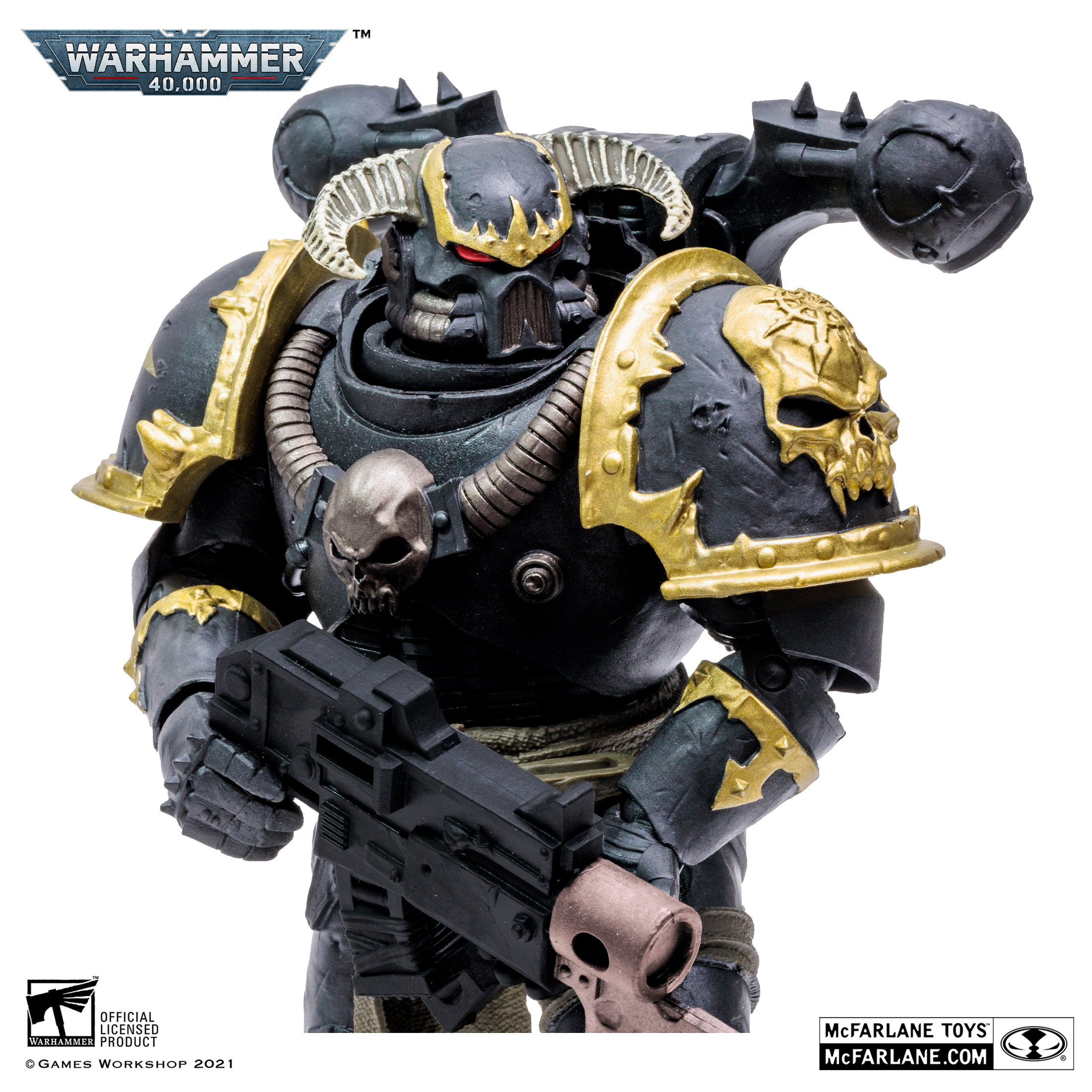 黑色軍團(Black Legion):原軍團編號ⅩⅥ,基因原體是荷魯斯·盧佩卡爾(HorusLupercal)。最早的名稱是影月蒼狼(Luna Wolves),是星際戰士軍團中作戰能力最強的一支,亦是大遠征時期戰功最高的軍團,荷魯斯也因戰功彪炳而被帝皇提拔為戰帥,軍團更獲得帝皇更名為荷魯斯之子(Sons of Horus)。在戰帥荷魯斯受混沌四大邪神腐化並發動叛亂後,荷魯斯手下的指揮官們對他的叛亂都有不同態度,最後有幾位指揮官選擇忠於帝皇並帶領軍團內的忠誠派將名稱改回影月蒼狼,一起在伊斯塔萬三號星上與他們叛亂的母團荷魯斯之子死戰,最終幾乎全軍覆沒。荷魯斯於泰拉之戰被帝皇親手殺死後,軍團第一連連長「掠奪者」阿巴頓(Abaddon the Despoiler)統合剩餘的荷魯斯之子主力,成為繼任領袖並再度改名為黑色軍團(Black Legion),盔甲為全黑色,圖騰則是一隻混沌之眼。黑色軍團撤退至恐懼之眼後,仍在阿巴頓的率領下不斷進犯帝國邊疆,發起合共十三次黑暗遠征,是一萬年以來帝國最為困擾的敵手。